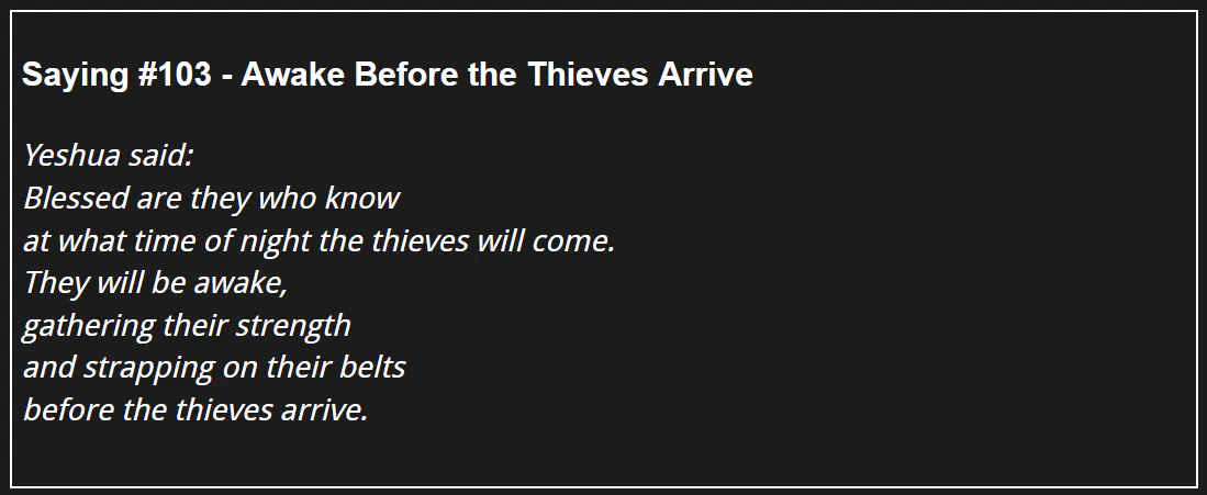 114 Days of The Gospel of Thomas - Saying #103 - Awake Before the Thieves Arrive
