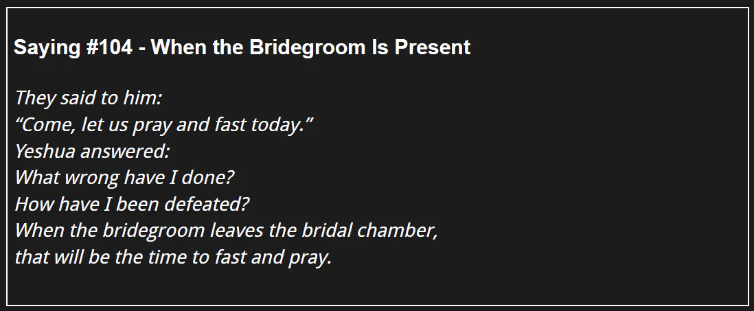 114 Days of The Gospel of Thomas - Saying #104 - When the Bridegroom Is Present