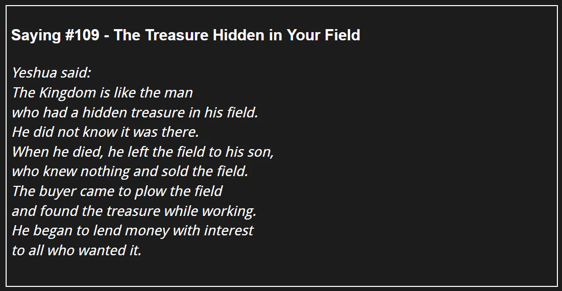 114 Days of The Gospel of Thomas - Saying #109 - The Treasure Hidden in Your Field