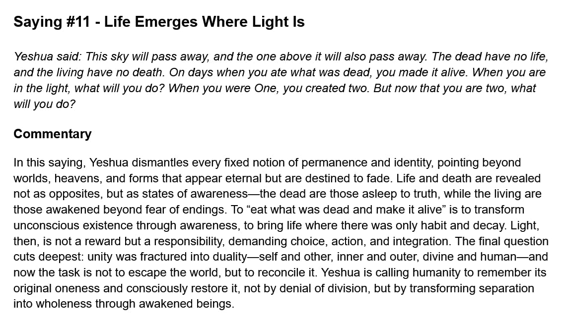 114 Days of The Gospel of Thomas - Saying #11 - Life Emerges Where Light Is