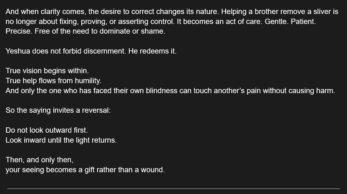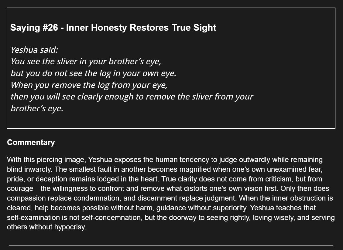 114 Days of The Gospel of Thomas - Saying #26 - Inner Honesty Restores True Sight