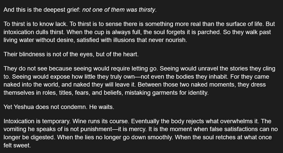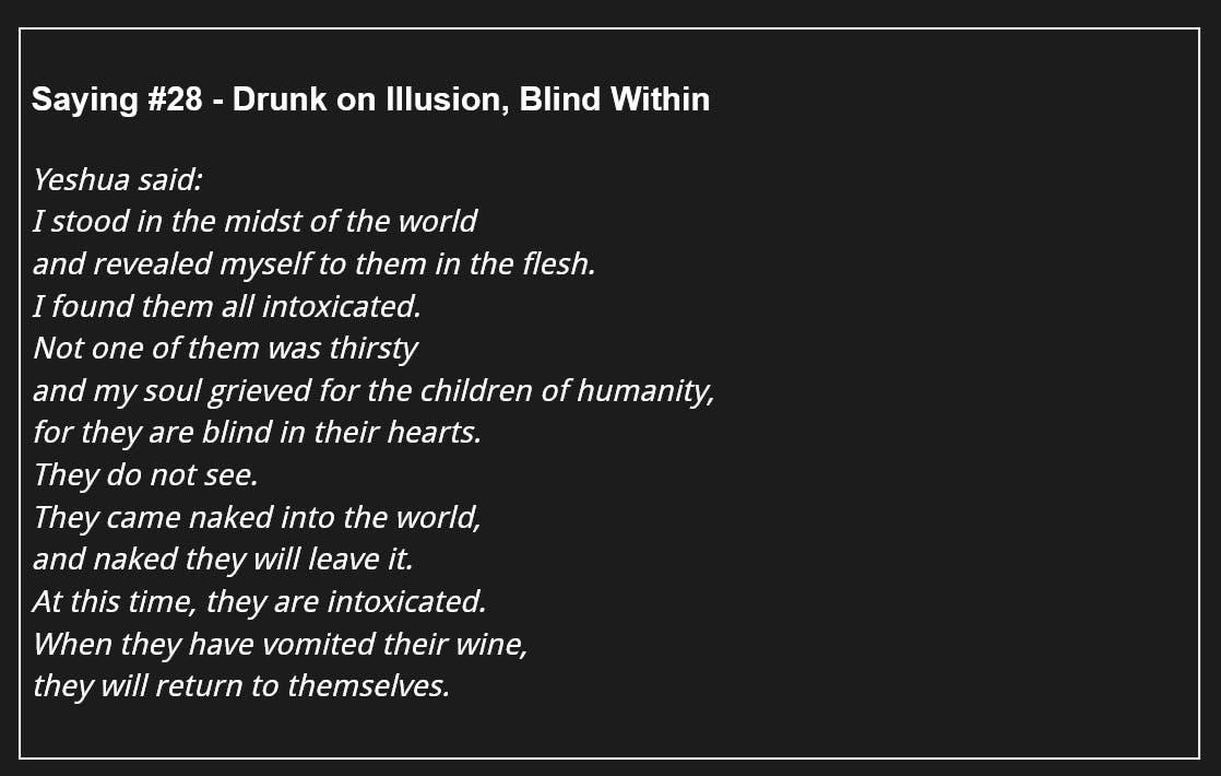 114 Days of The Gospel of Thomas - Saying #28 - Drunk on Illusion, Blind Within