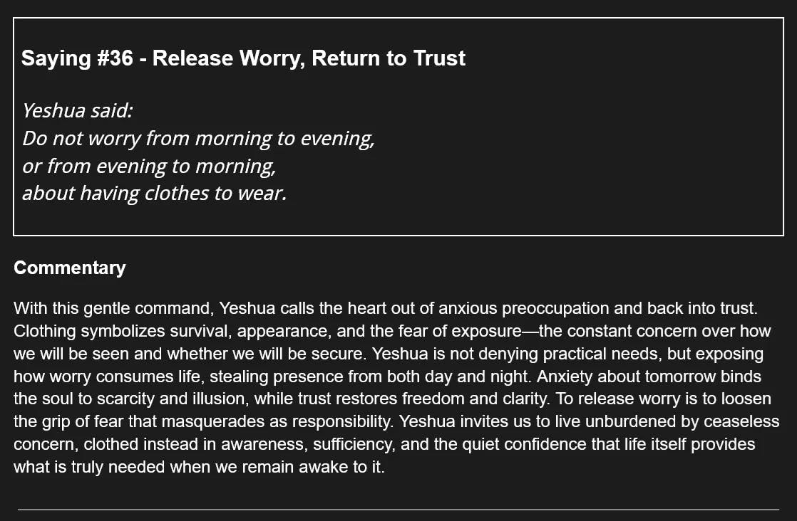 114 Days of The Gospel of Thomas - Saying #36 - Release Worry, Return to Trust