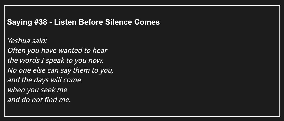 114 Days of The Gospel of Thomas - Saying #38 - Listen Before Silence Comes