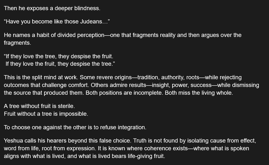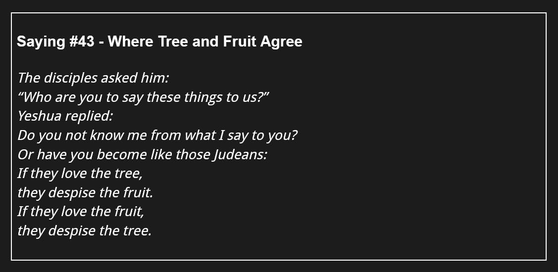 114 Days of The Gospel of Thomas - Saying #43 - Where Tree and Fruit Agree