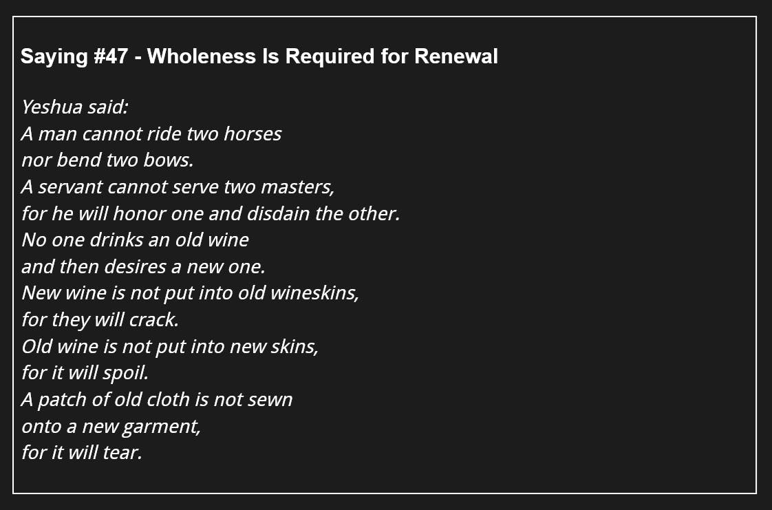 114 Days of The Gospel of Thomas - Saying #47 - Wholeness Is Required for Renewal