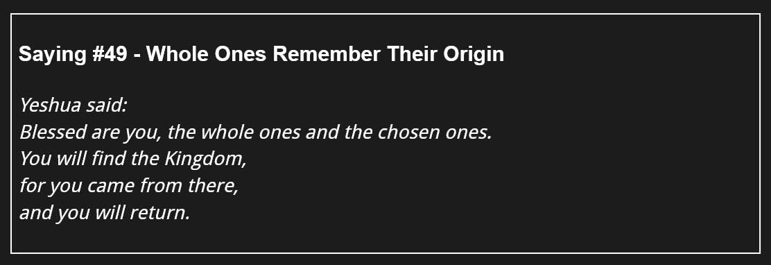 114 Days of The Gospel of Thomas - Saying #49 - Whole Ones Remember Their Origin