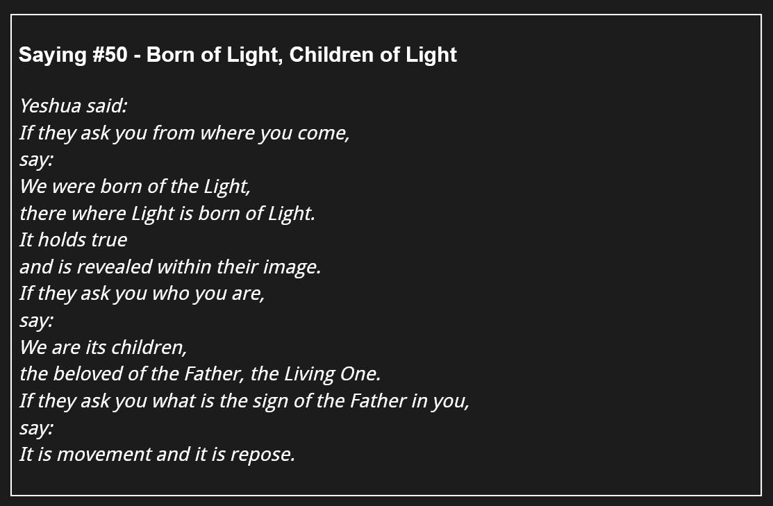 114 Days of The Gospel of Thomas - Saying #50 - Born of Light, Children of Light