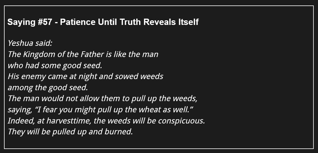 114 Days of The Gospel of Thomas - Saying #57 - Patience Until Truth Reveals Itself