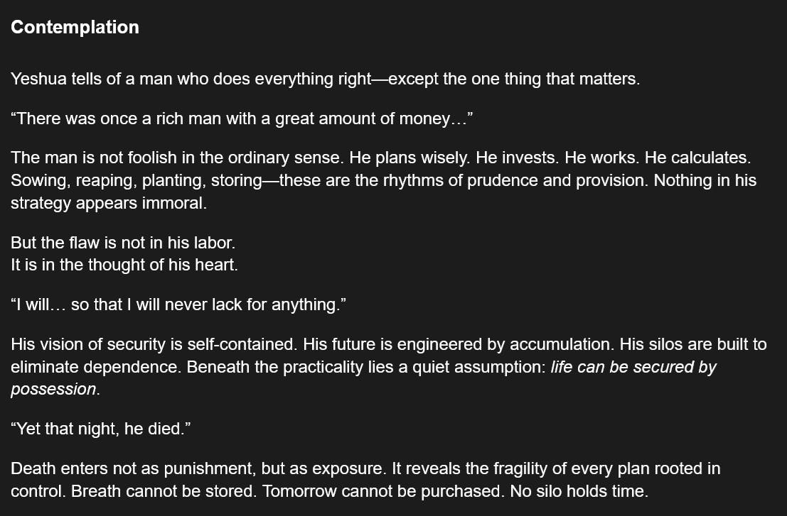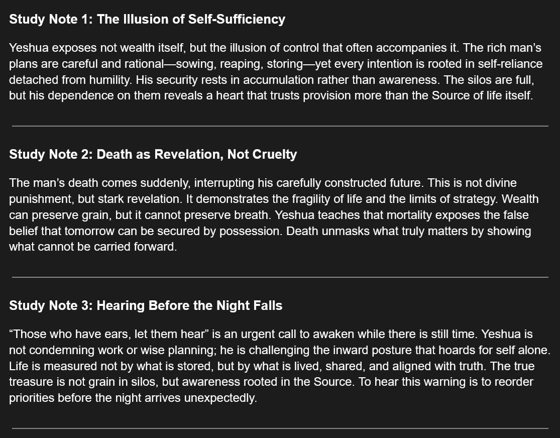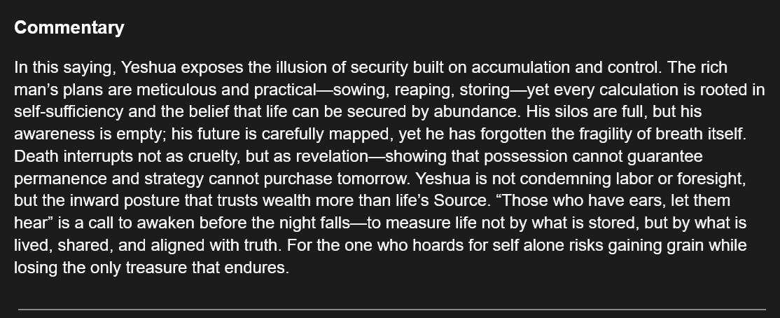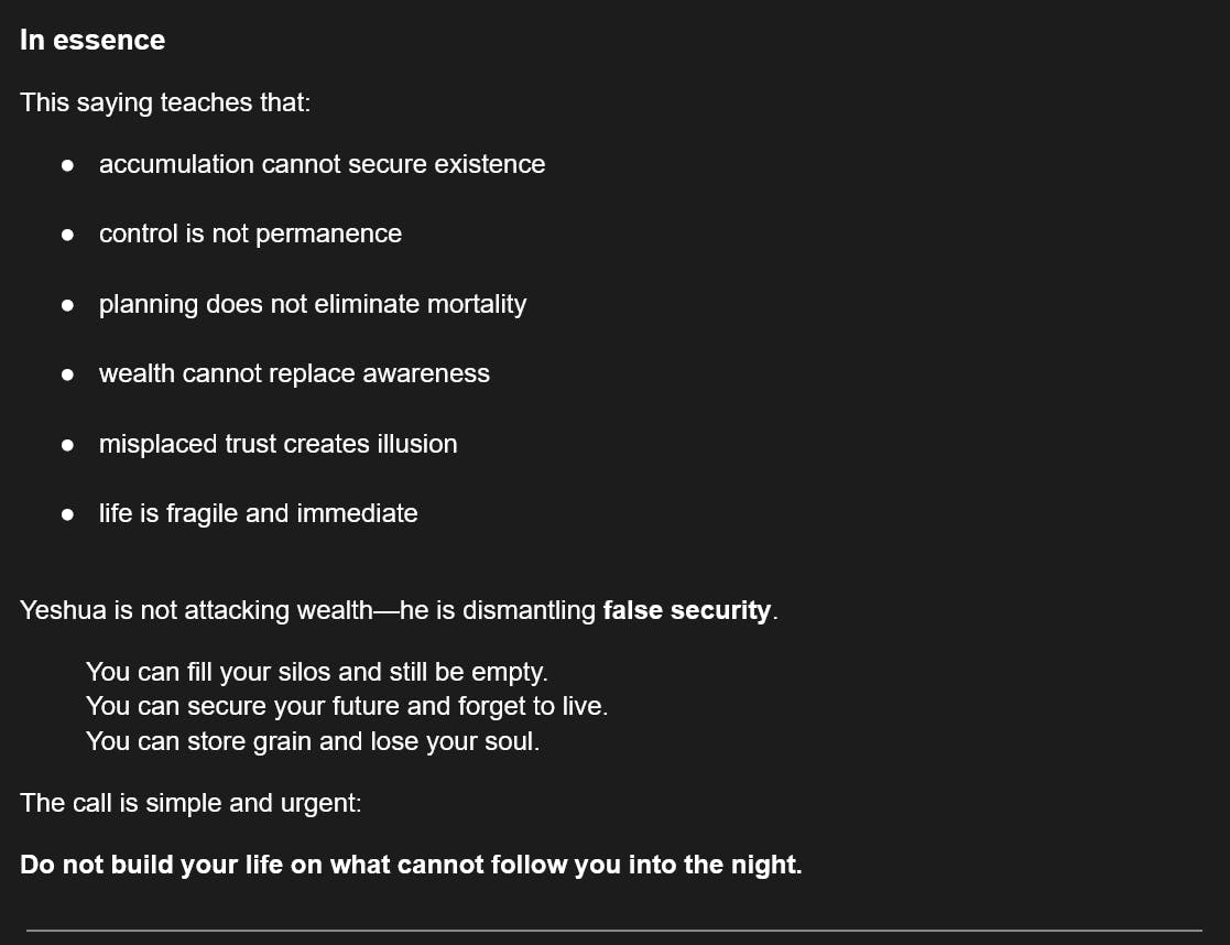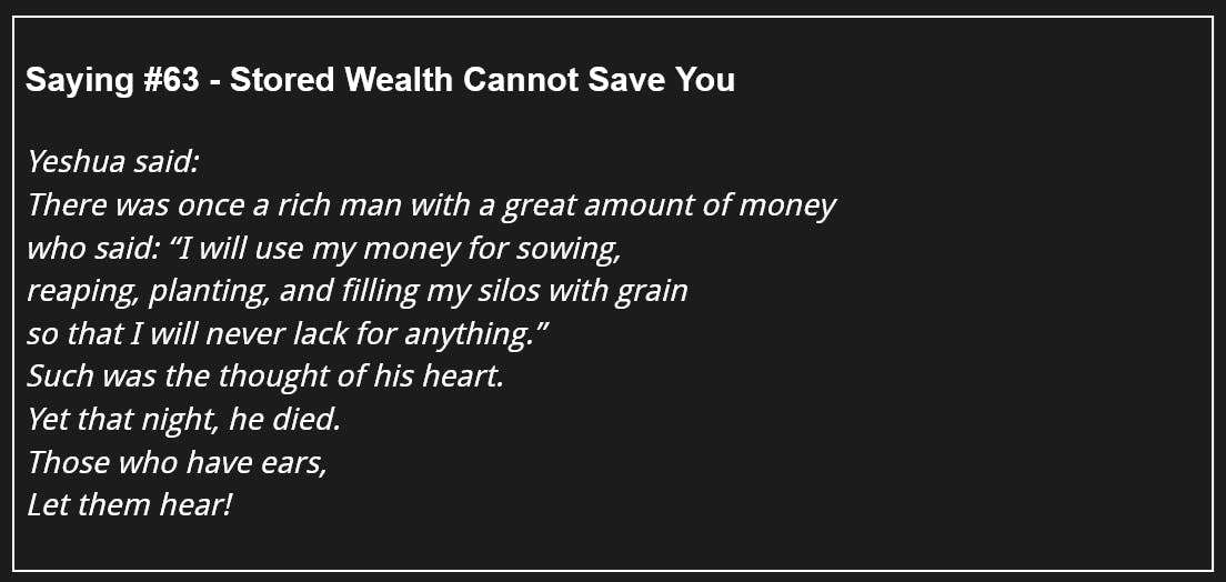 114 Days of The Gospel of Thomas - Saying #63 - Stored Wealth Cannot Save You