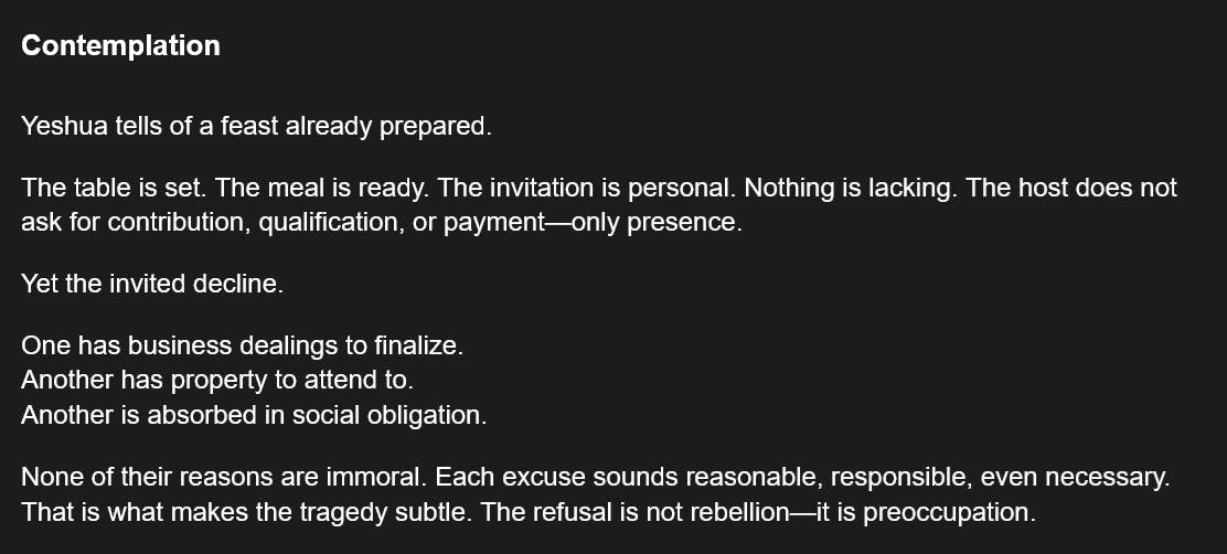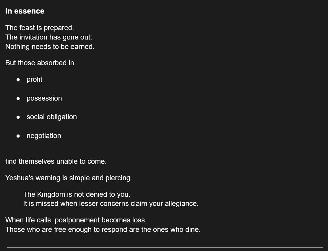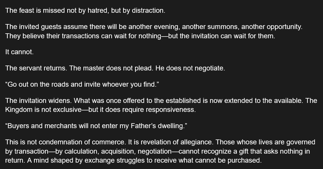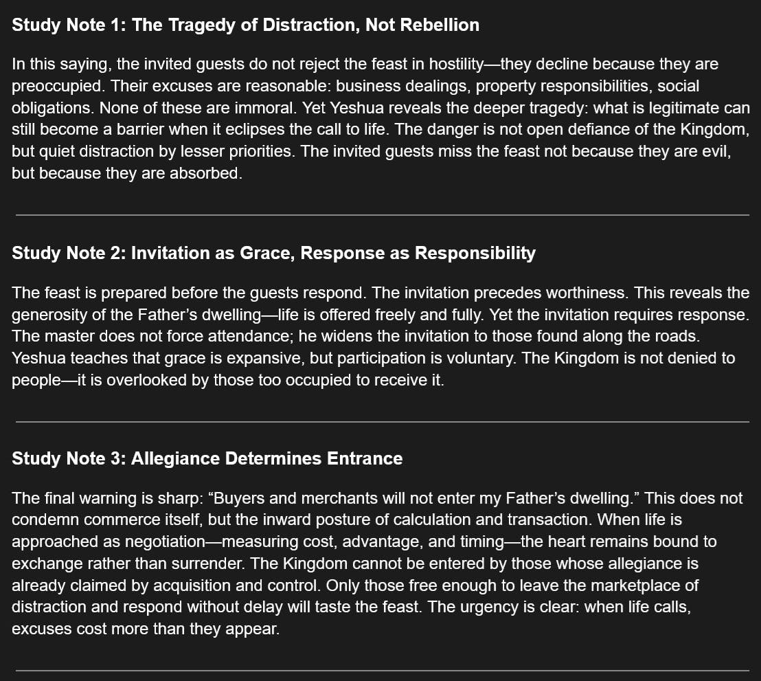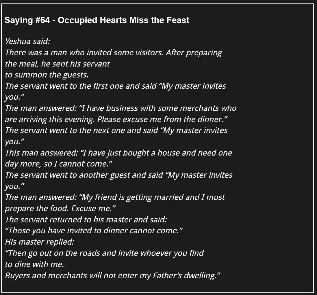 114 Days of The Gospel of Thomas - Saying #64 - Occupied Hearts Miss the Feast