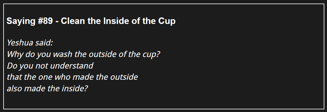 114 Days of The Gospel of Thomas - Saying #89 - Clean the Inside of the Cup