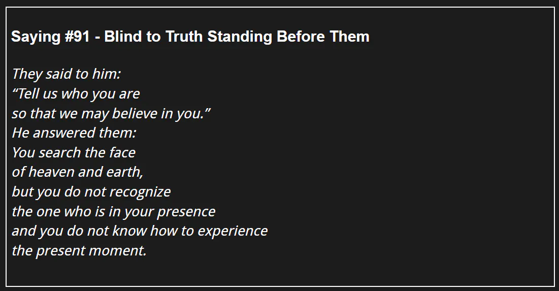 114 Days of The Gospel of Thomas - Saying #91 - Blind to Truth Standing Before Them