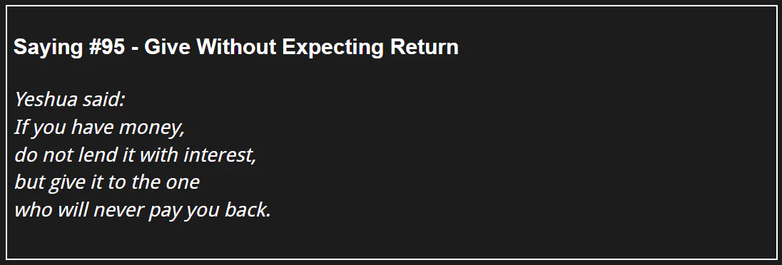 114 Days of The Gospel of Thomas - Saying #95 - Give Without Expecting Return