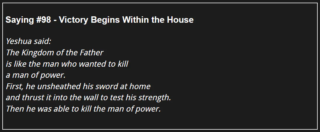 114 Days of The Gospel of Thomas - Saying #98 - Victory Begins Within the House