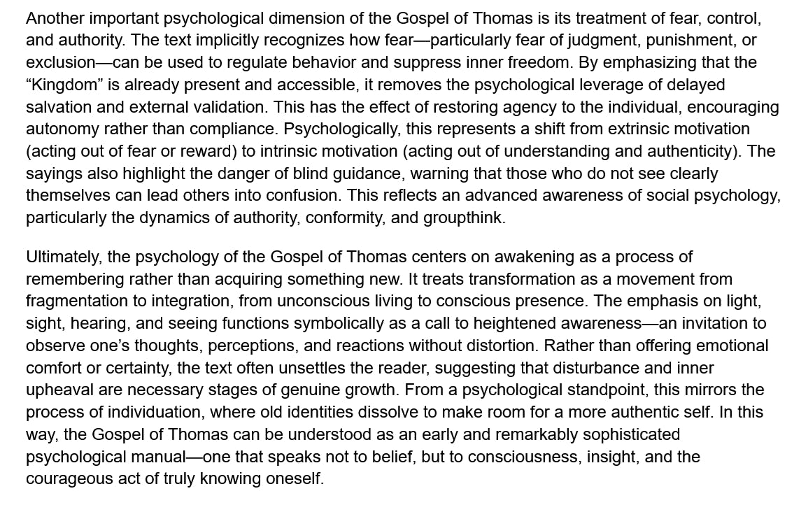 114 Days of The Gospel of Thomas - The Psychology of the Gospel of Thomas