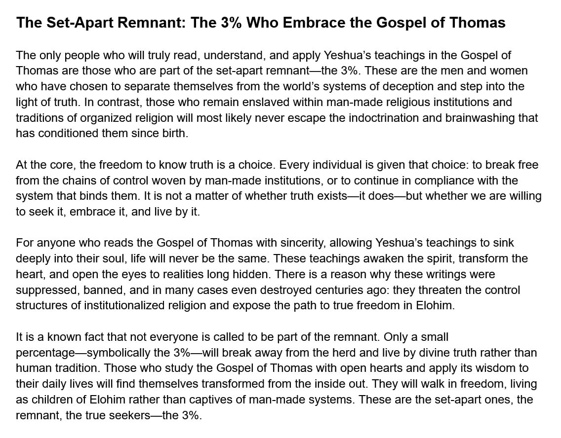 114 Days of The Gospel of Thomas - The Set-Apart Remnant: The 3% Who Embrace the Gospel of Thomas