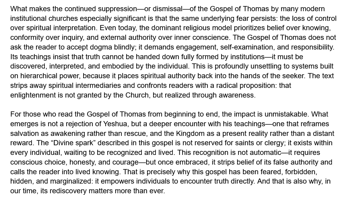 114 Days of The Gospel of Thomas - Why the Gospel of Thomas Was Feared, Forbidden, and Hidden—and Why It Still Matters Today