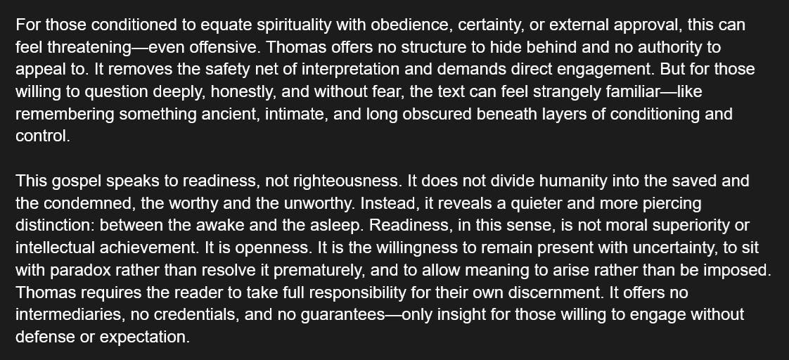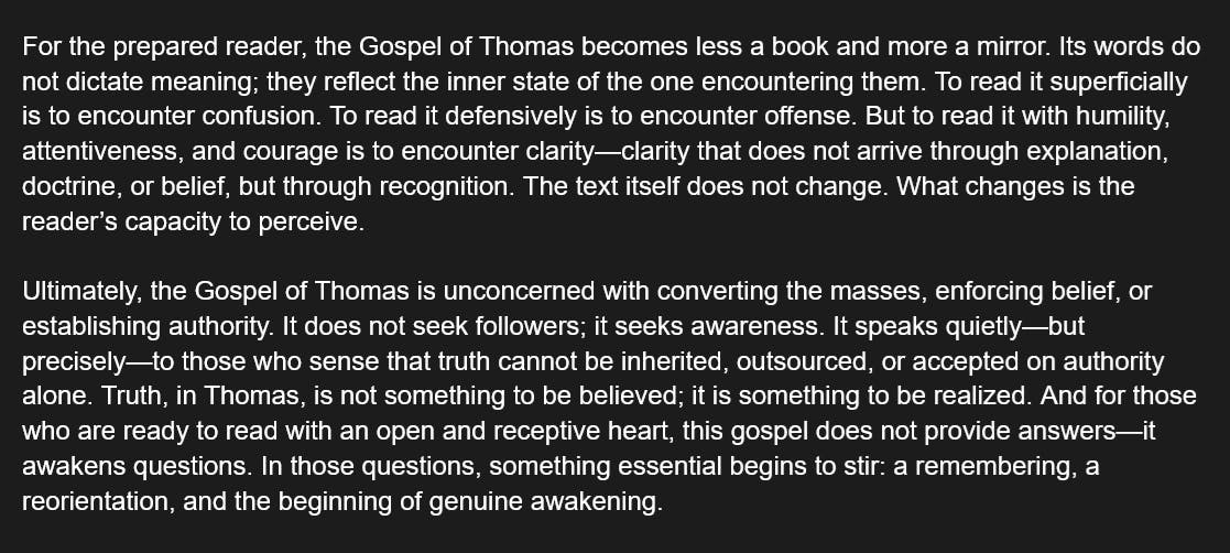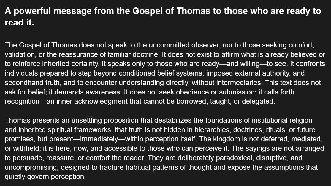 A powerful message from the Gospel of Thomas to those who are ready to read it.