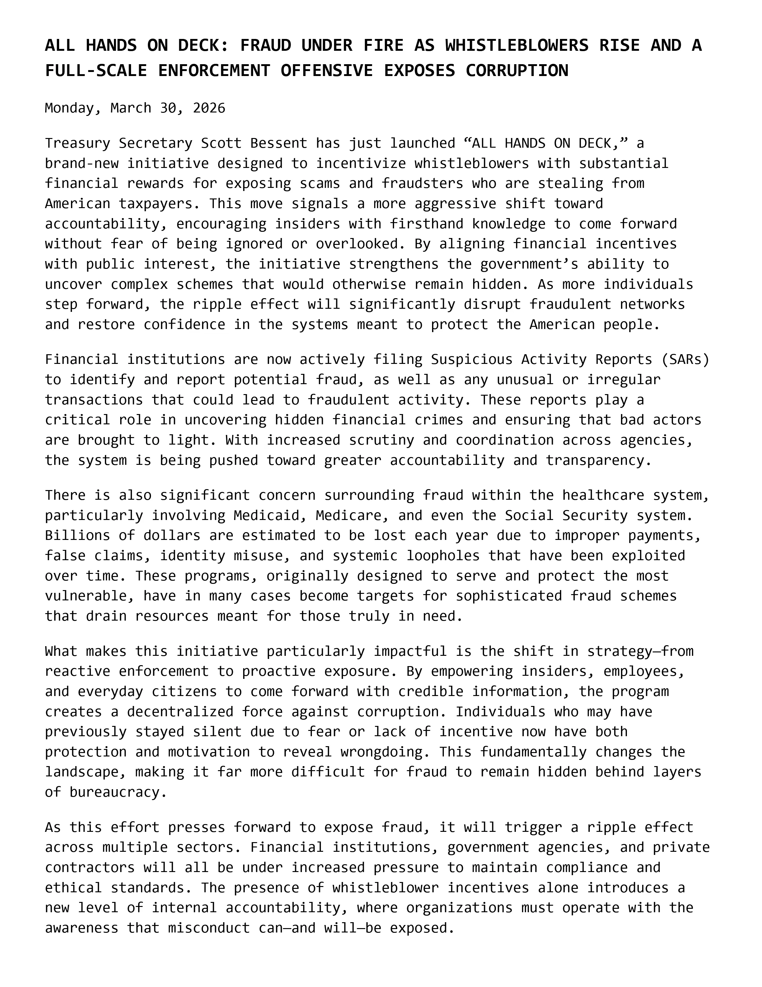 ALL HANDS ON DECK: FRAUD UNDER FIRE AS WHISTLEBLOWERS RISE AND A FULL-SCALE ENFORCEMENT OFFENSIVE EXPOSES CORRUPTION