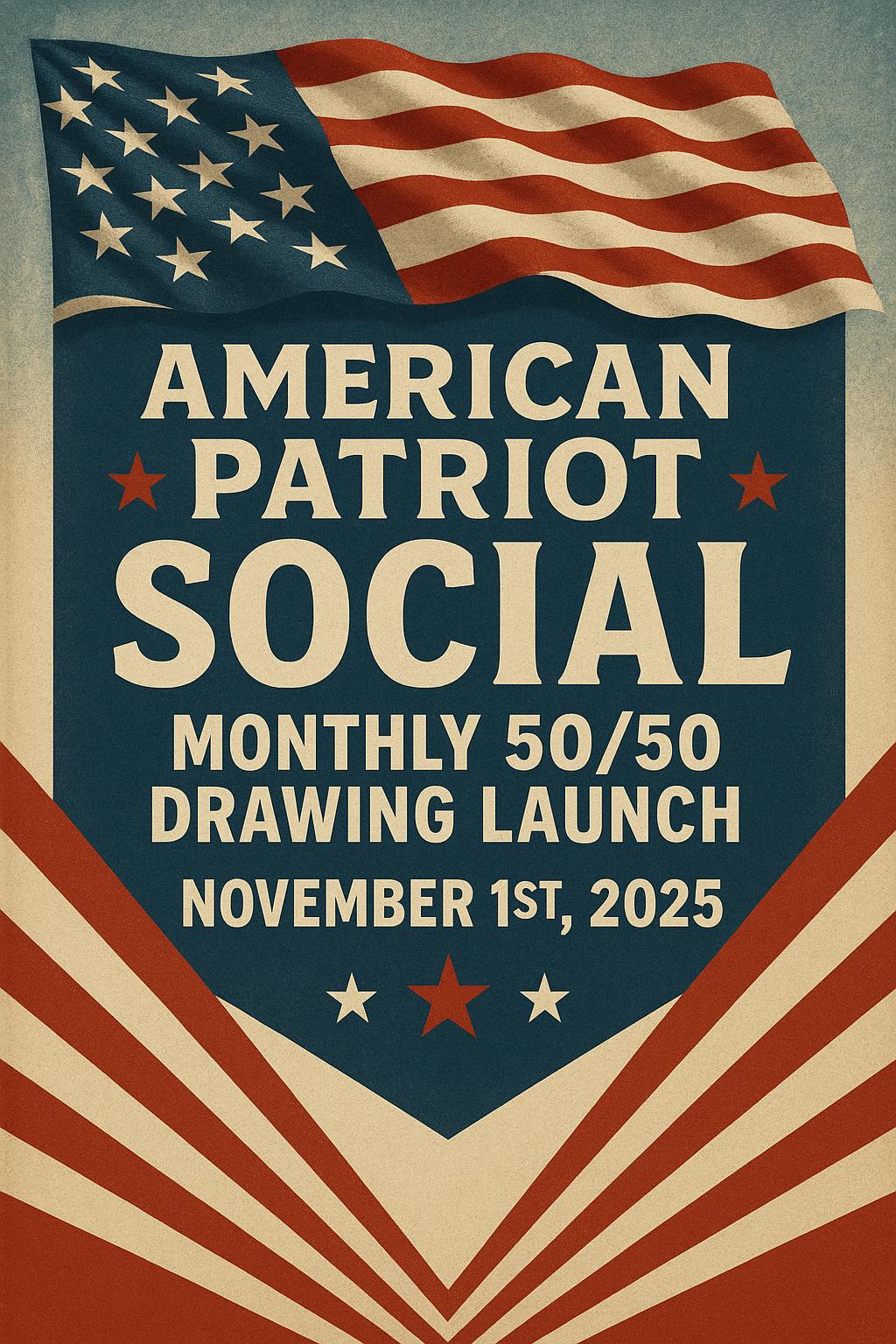 Starting November 1st, 2025, at 12:01 a.m., we will officially begin offering entries into the American Patriot Social Monthly 50/50 Drawing. This exciting opportunity allows our community members and supporters to participate in a monthly event that not only rewards generosity but also strengthens our shared mission of spreading truth and preserving free speech.