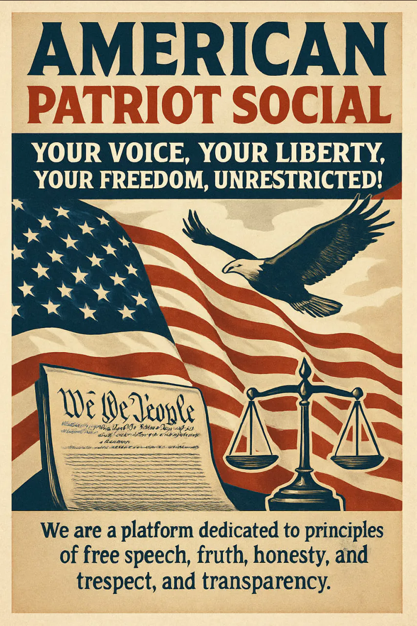 At its core, American Patriot Social is a space for free speech and free expression—a place where ideas are born, challenged, and refined. We believe that the open exchange of thoughts and words is the catalyst for progress, innovation, and societal change. Our platform empowers people to voice their truths, ask tough questions, and explore new perspectives fearlessly. In a world where censorship and conformity threaten the free flow of ideas, we stand as a beacon of hope and resilience, inviting everyone to join us in shaping the discourse of our time. Together, we can build a future where free speech is not just a right, but a shared responsibility that unites us all in the pursuit of truth, knowledge, and understanding.