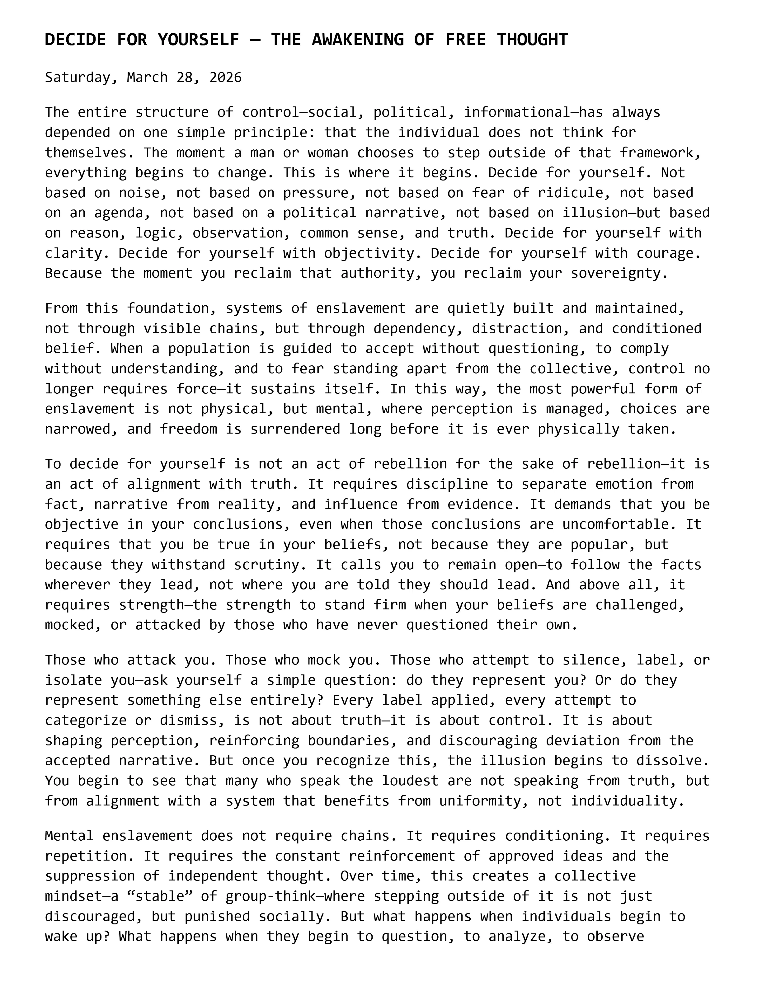 DECIDE FOR YOURSELF โ THE AWAKENING OF FREE THOUGHT