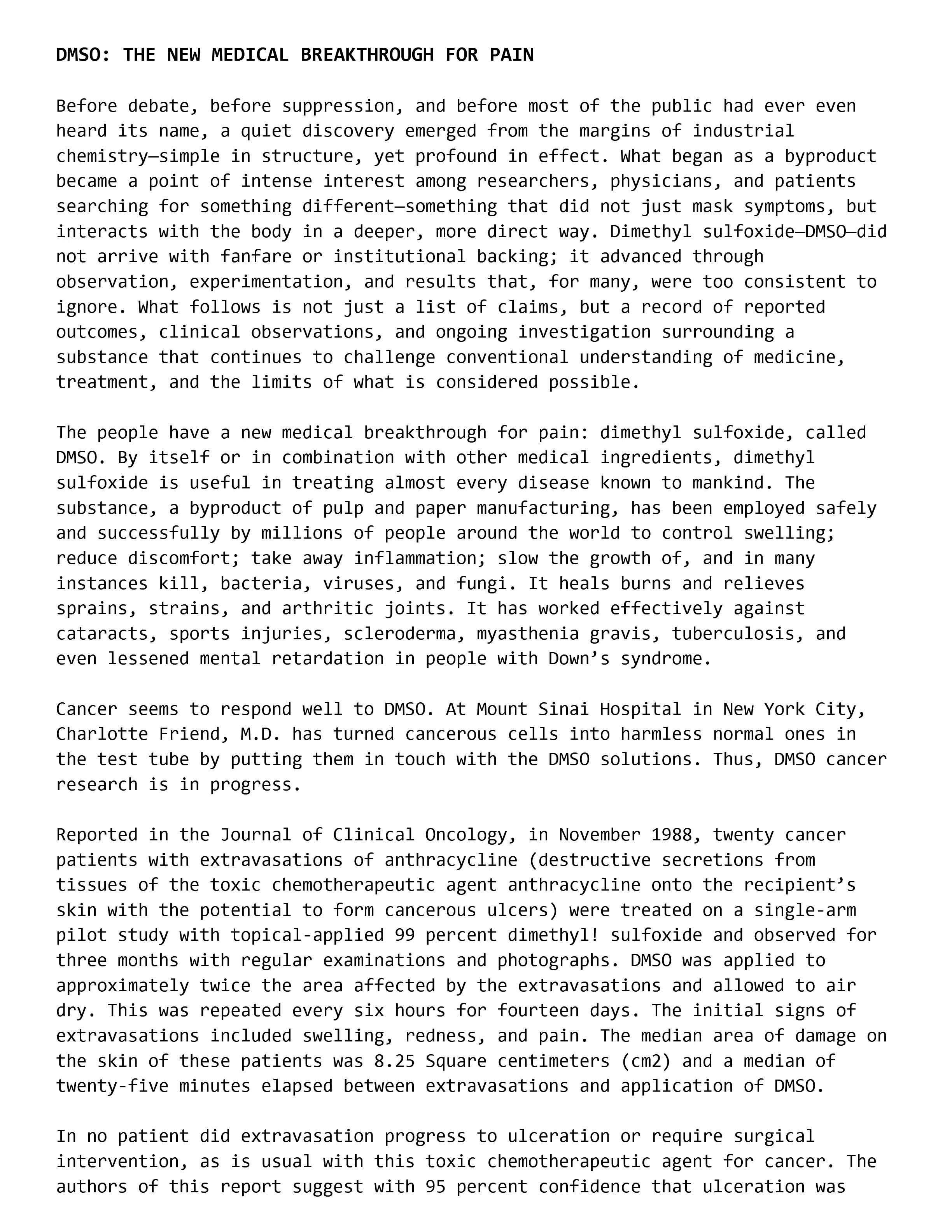 DMSO: THE NEW MEDICAL BREAKTHROUGH FOR PAIN