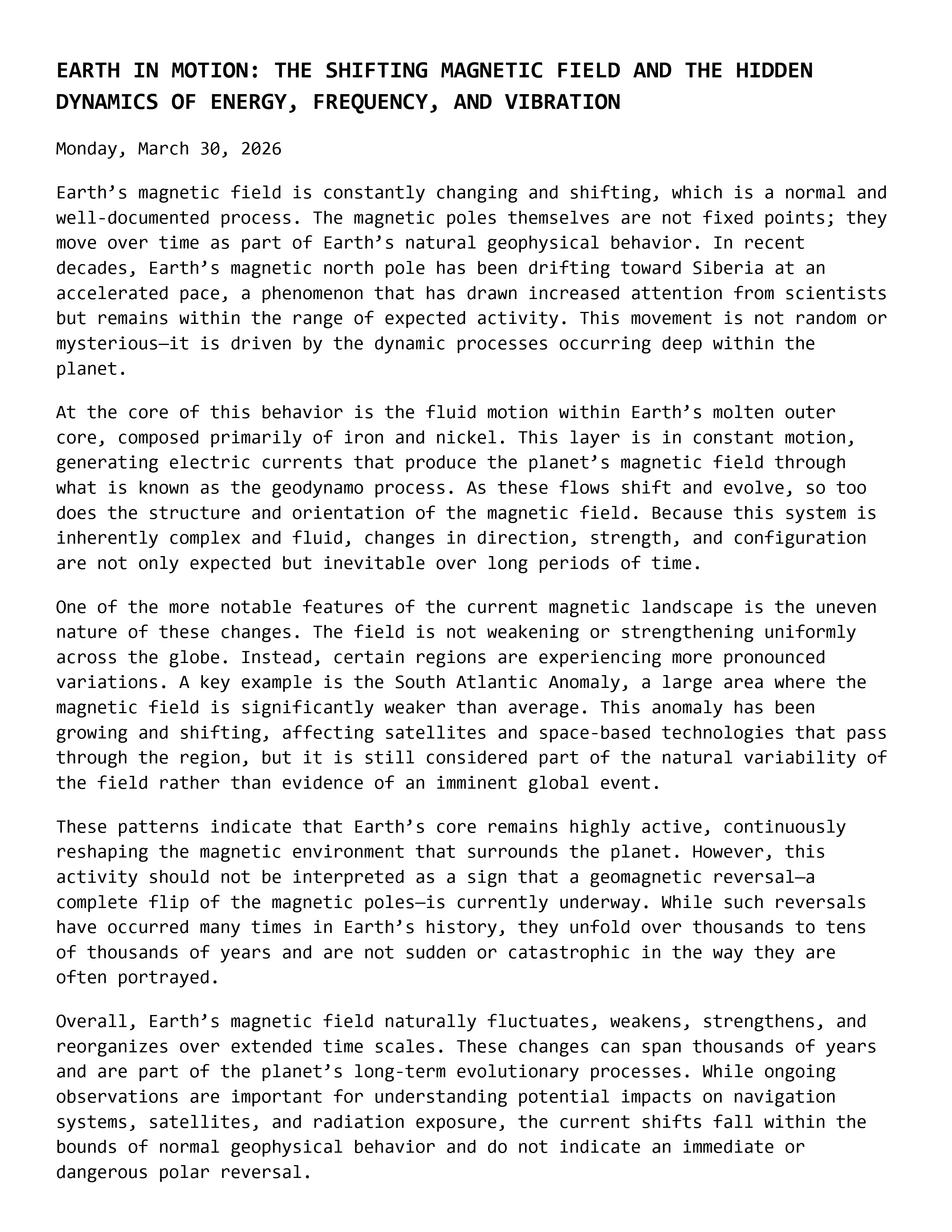EARTH IN MOTION: THE SHIFTING MAGNETIC FIELD AND THE HIDDEN DYNAMICS OF ENERGY, FREQUENCY, AND VIBRATION