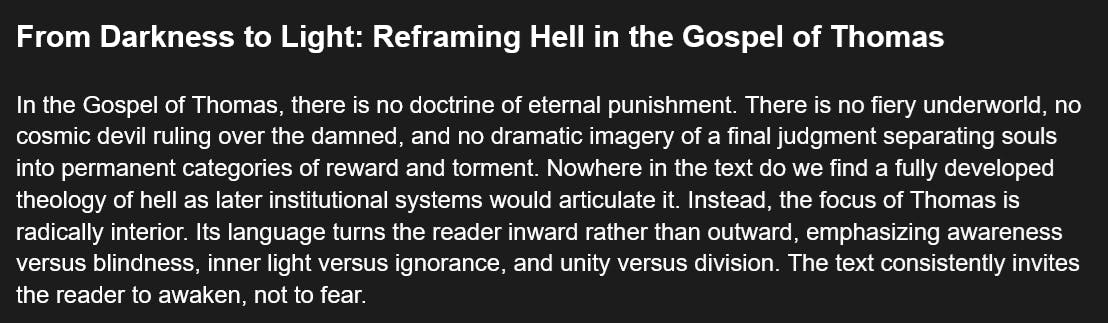 From Darkness to Light: Reframing Hell in the Gospel of Thomas