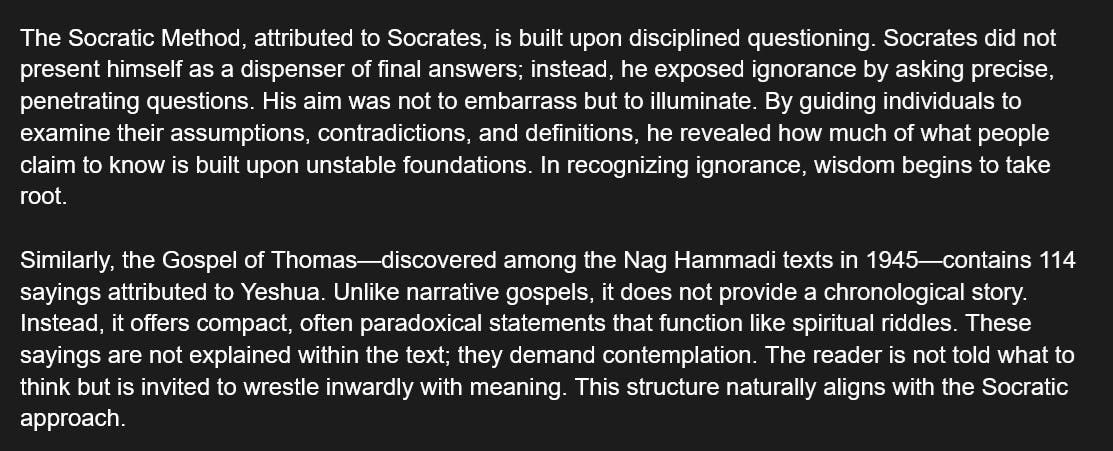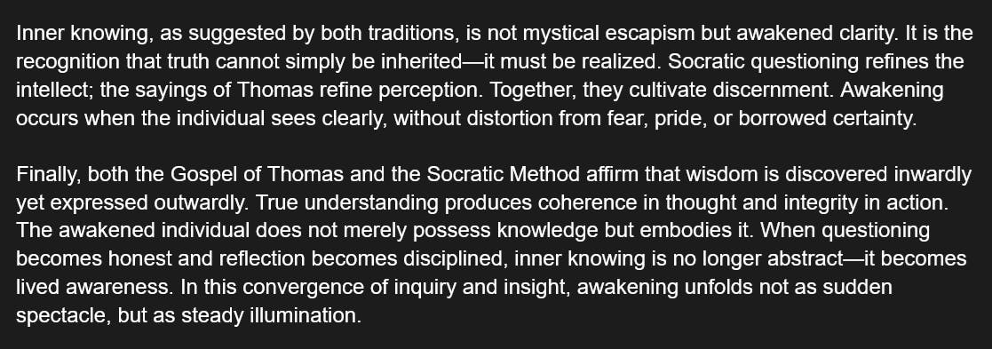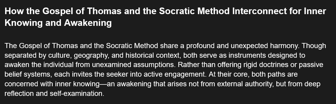 How the Gospel of Thomas and the Socratic Method Interconnect for Inner Knowing and Awakening