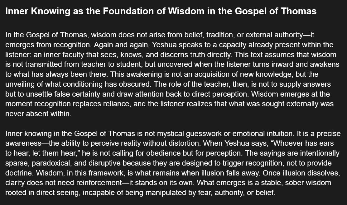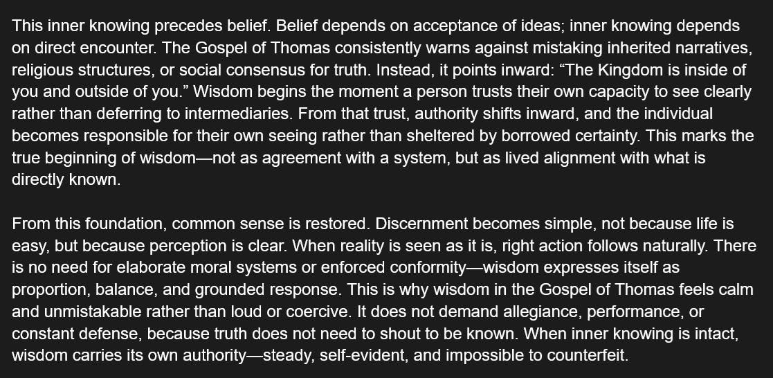 Inner Knowing as the Foundation of Wisdom in the Gospel of Thomas