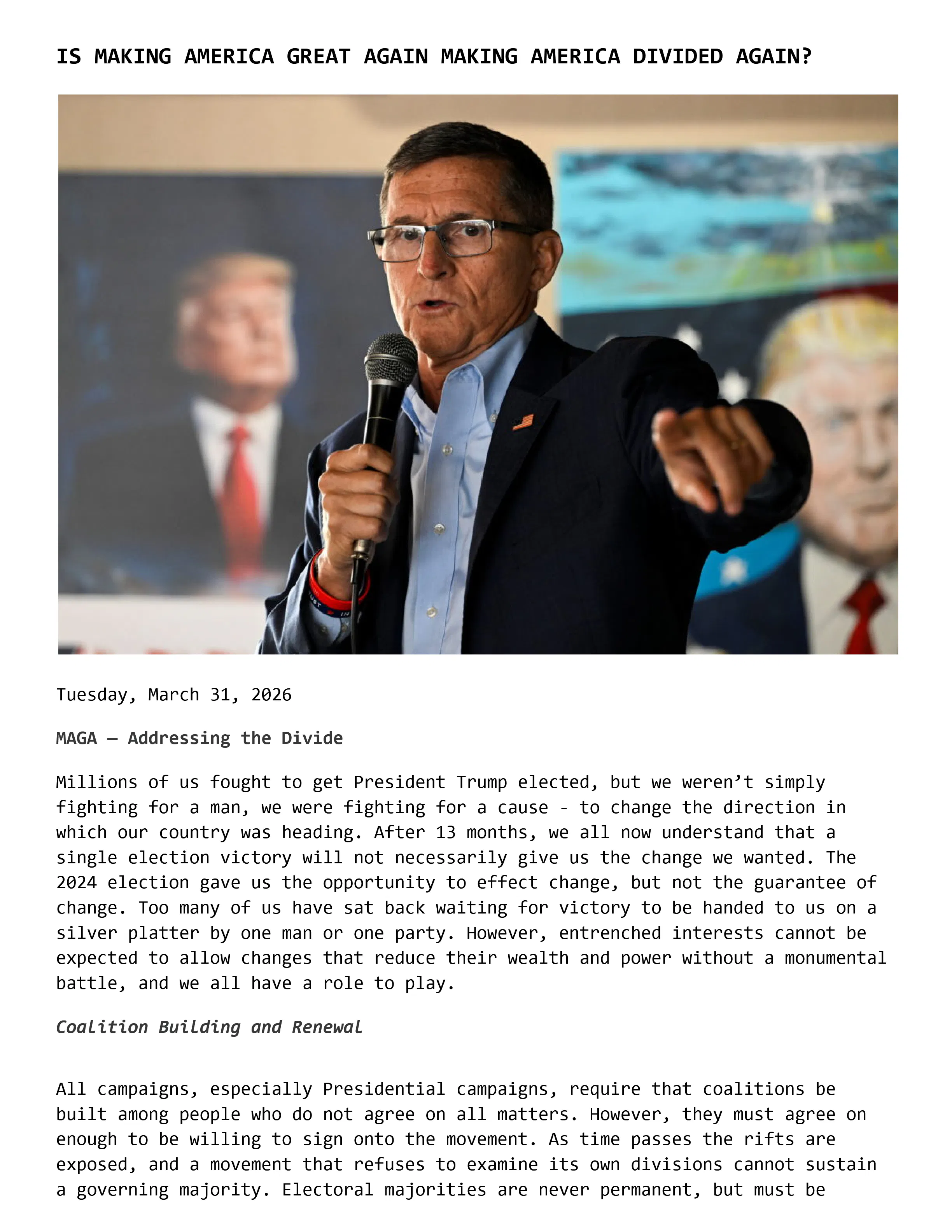 IS MAKING AMERICA GREAT AGAIN MAKING AMERICA DIVIDED AGAIN?