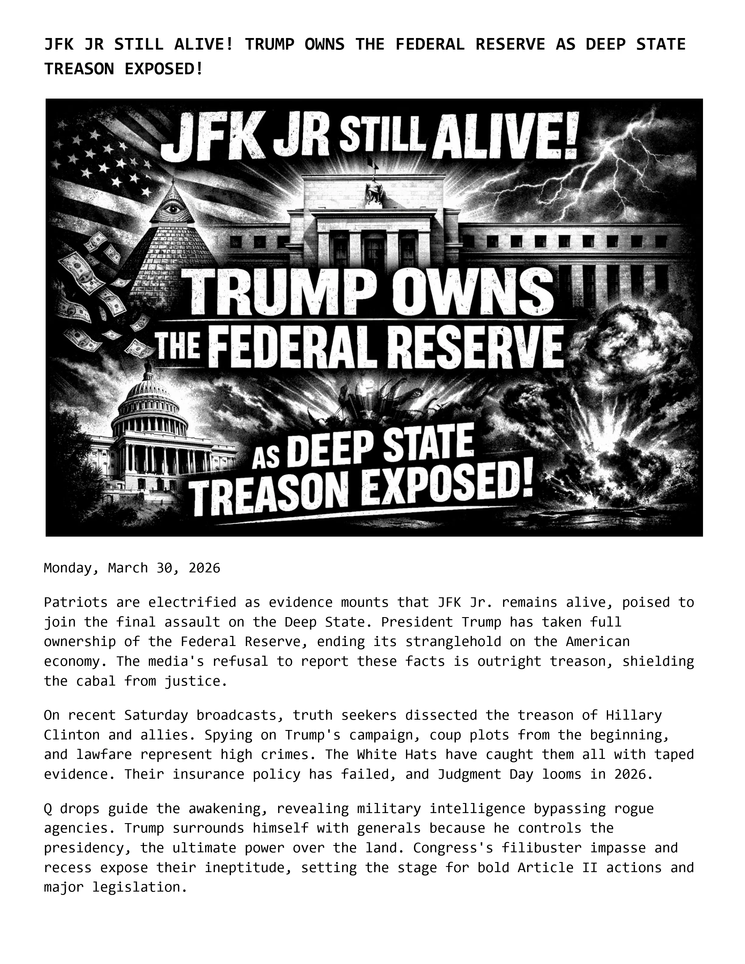JFK JR STILL ALIVE! TRUMP OWNS THE FEDERAL RESERVE AS DEEP STATE TREASON EXPOSED!