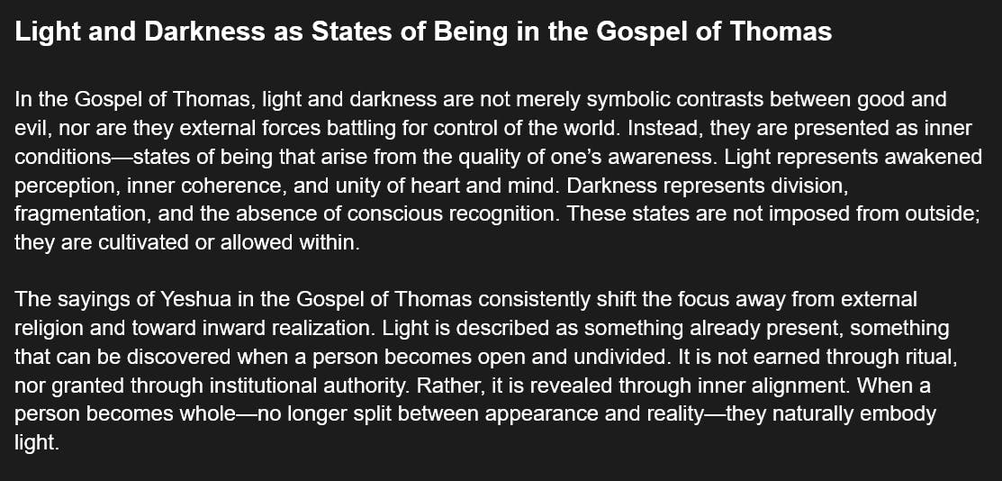 Light and Darkness as States of Being in the Gospel of Thomas