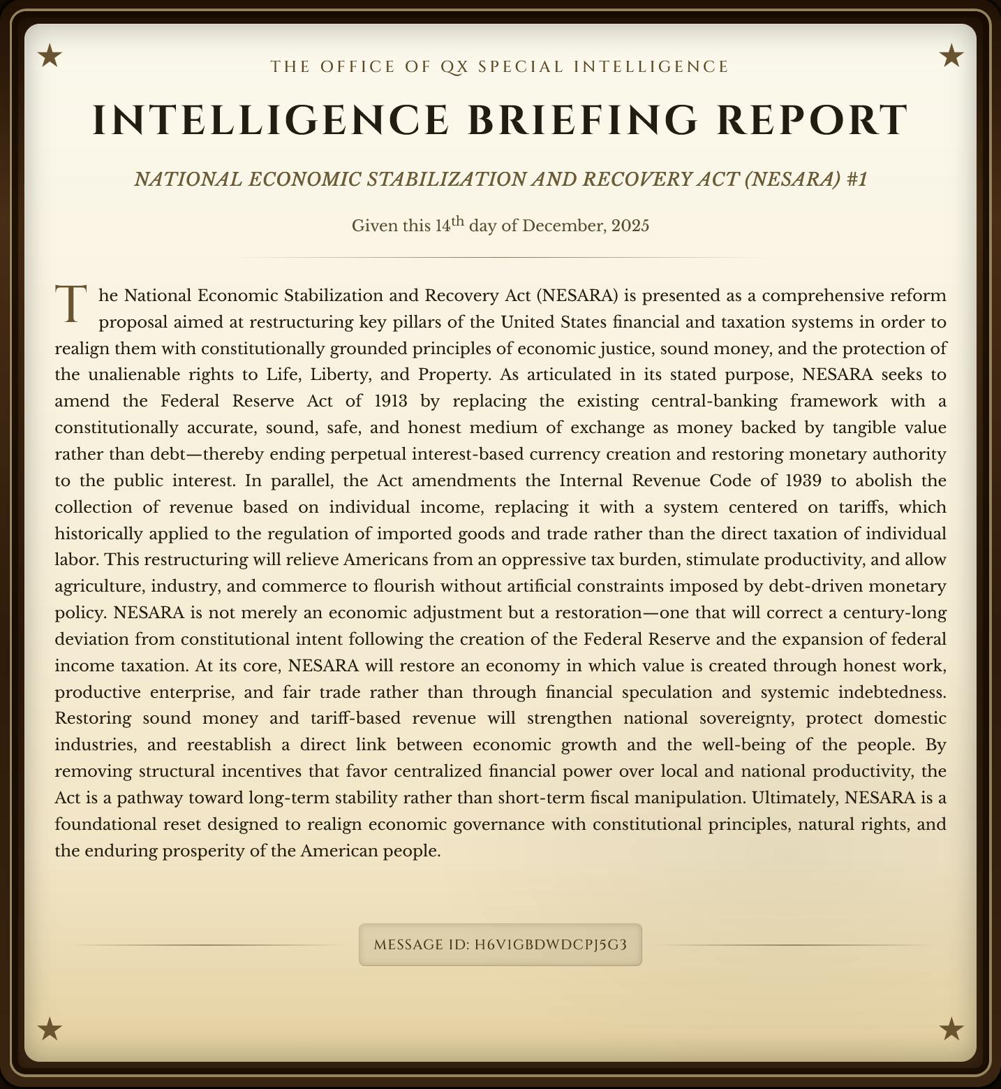NATIONAL ECONOMIC STABILIZATION AND RECOVERY ACT (NESARA) #1