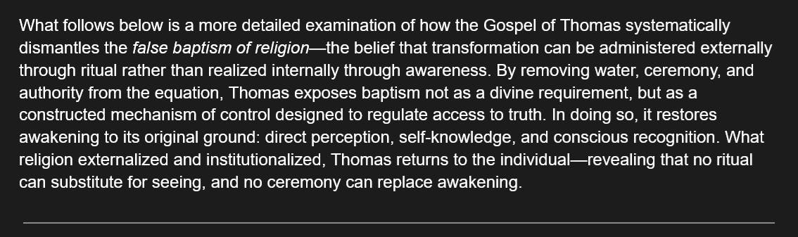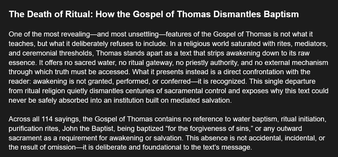 The Death of Ritual: How the Gospel of Thomas Dismantles Baptism