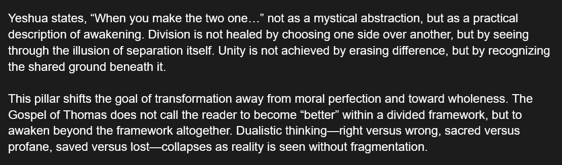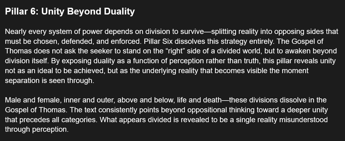 The Gospel of Thomas - The Seven Pillars of Inner Awakening - Pillar 6: Unity Beyond Duality