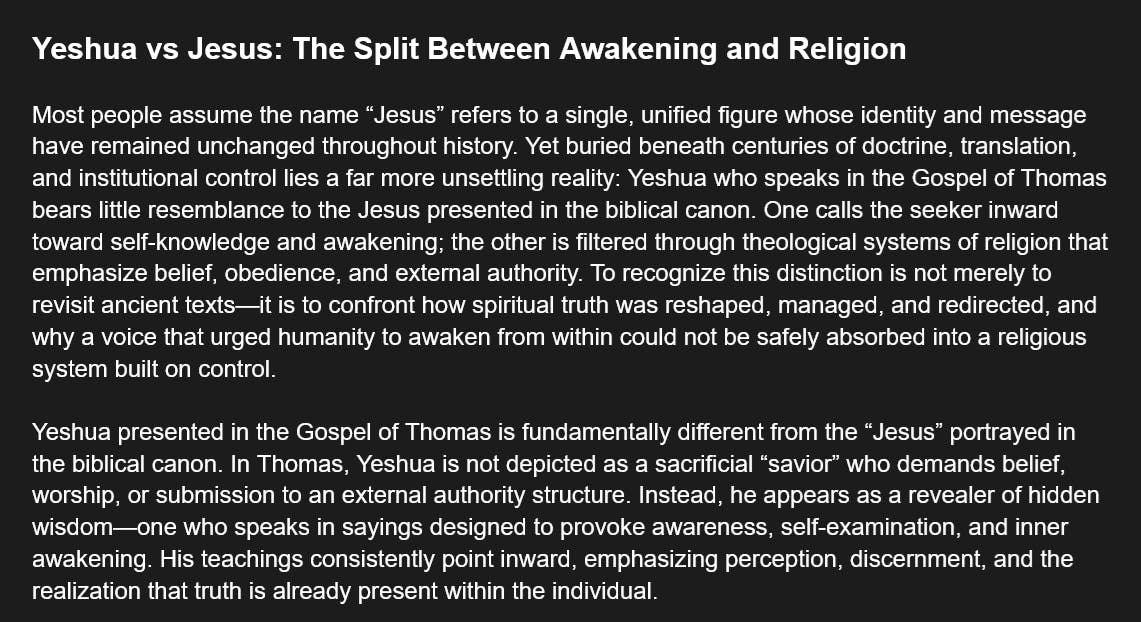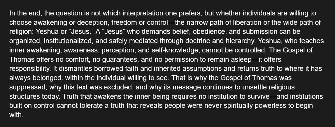 The Gospel of Thomas - Yeshua vs Jesus: The Split Between Awakening and Religion