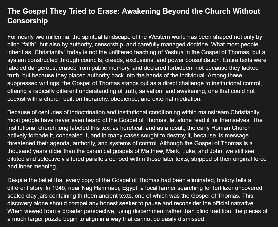 The Gospel They Tried to Erase: Awakening Beyond the Church Without Censorship