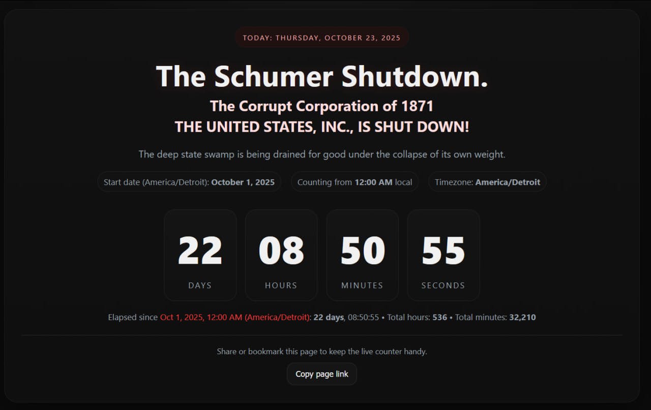 View The Timer Here: https://americanpatriotsocial.com/Schumer-Shutdown.html