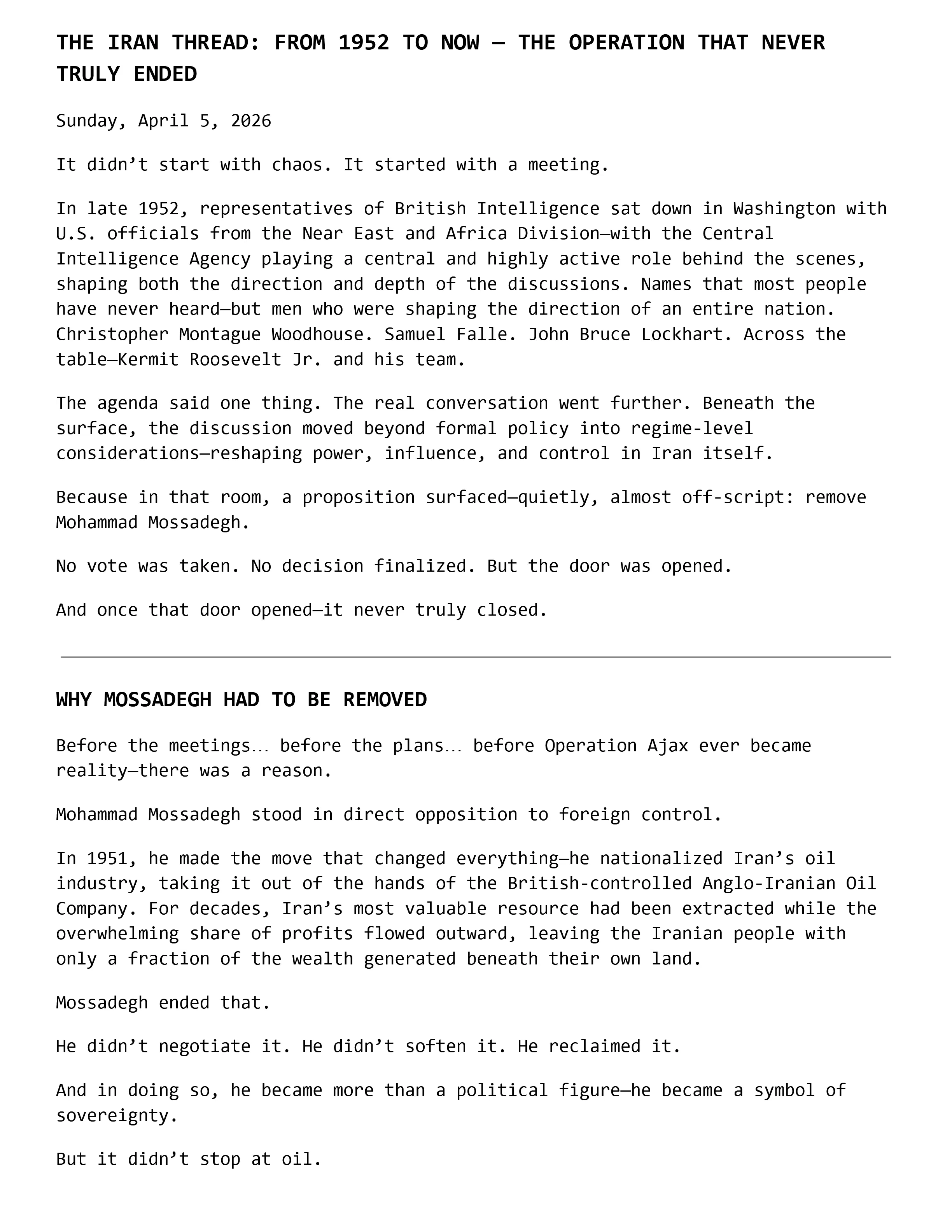 THE IRAN THREAD: FROM 1952 TO NOW โ THE OPERATION THAT NEVER TRULY ENDED