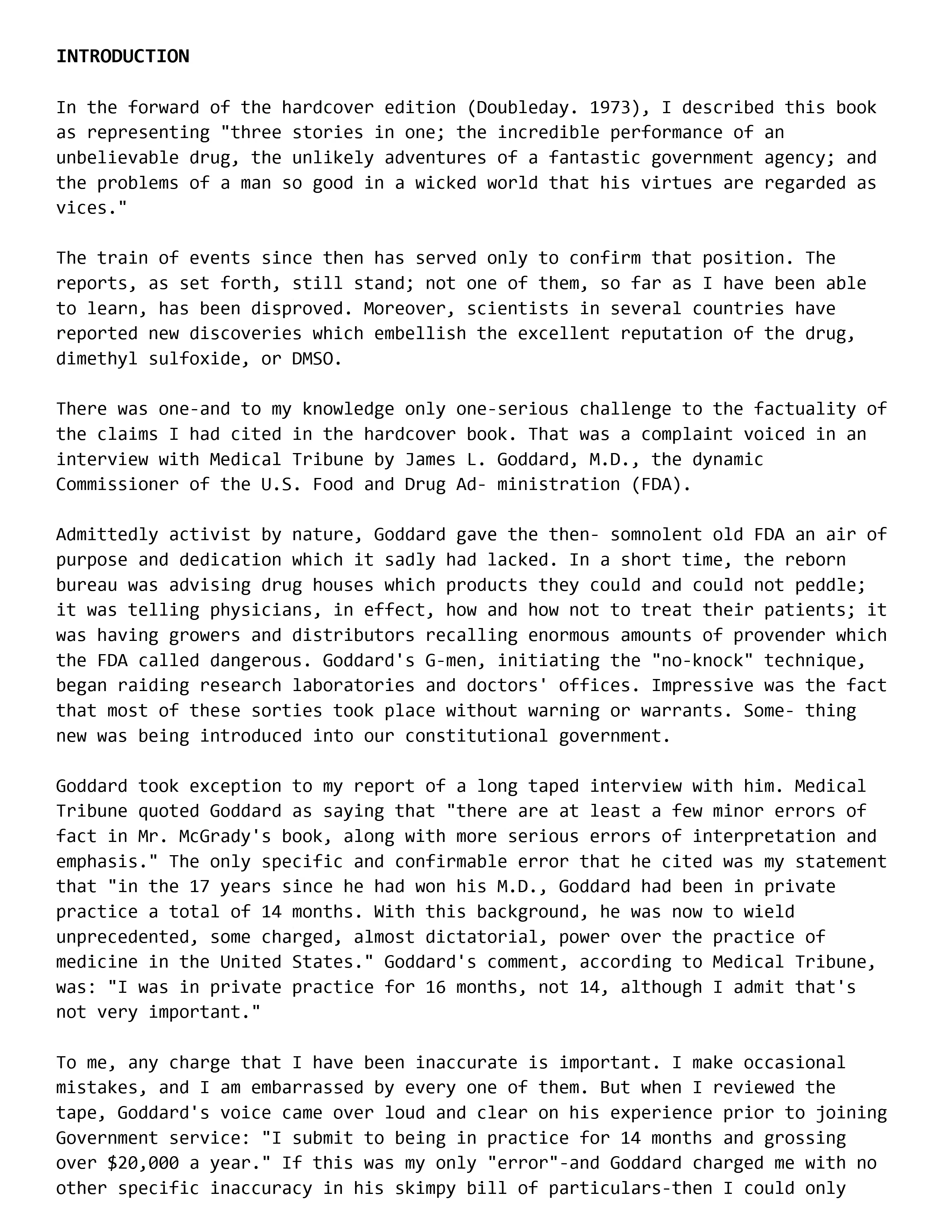 THE PERSECUTED DRUG THE STORY OF DMSO - INTRODUCTION
