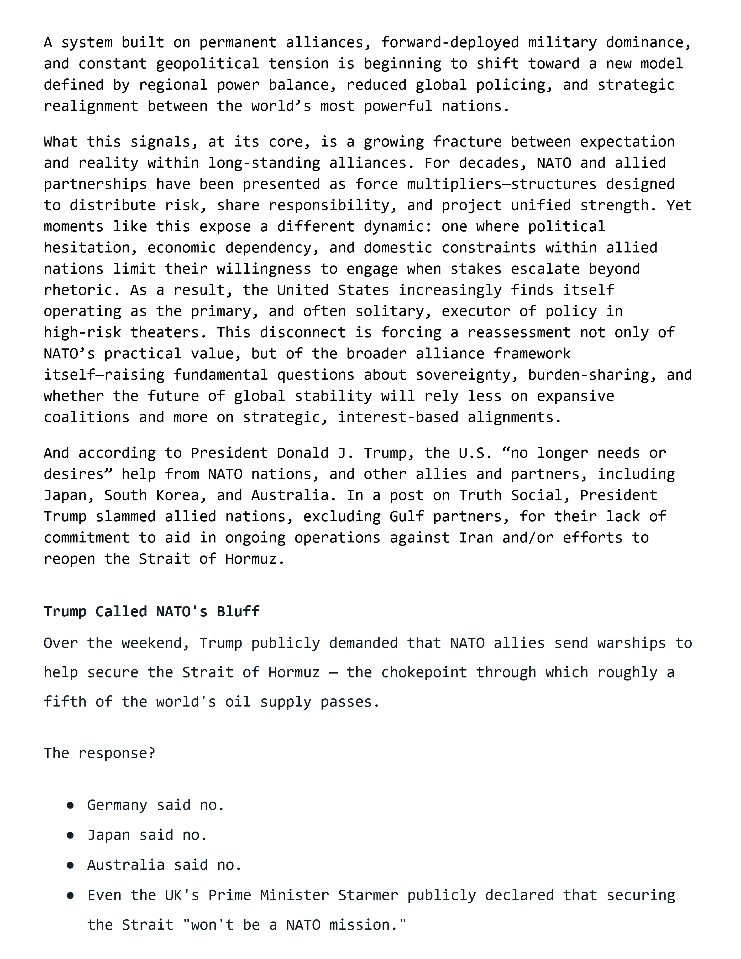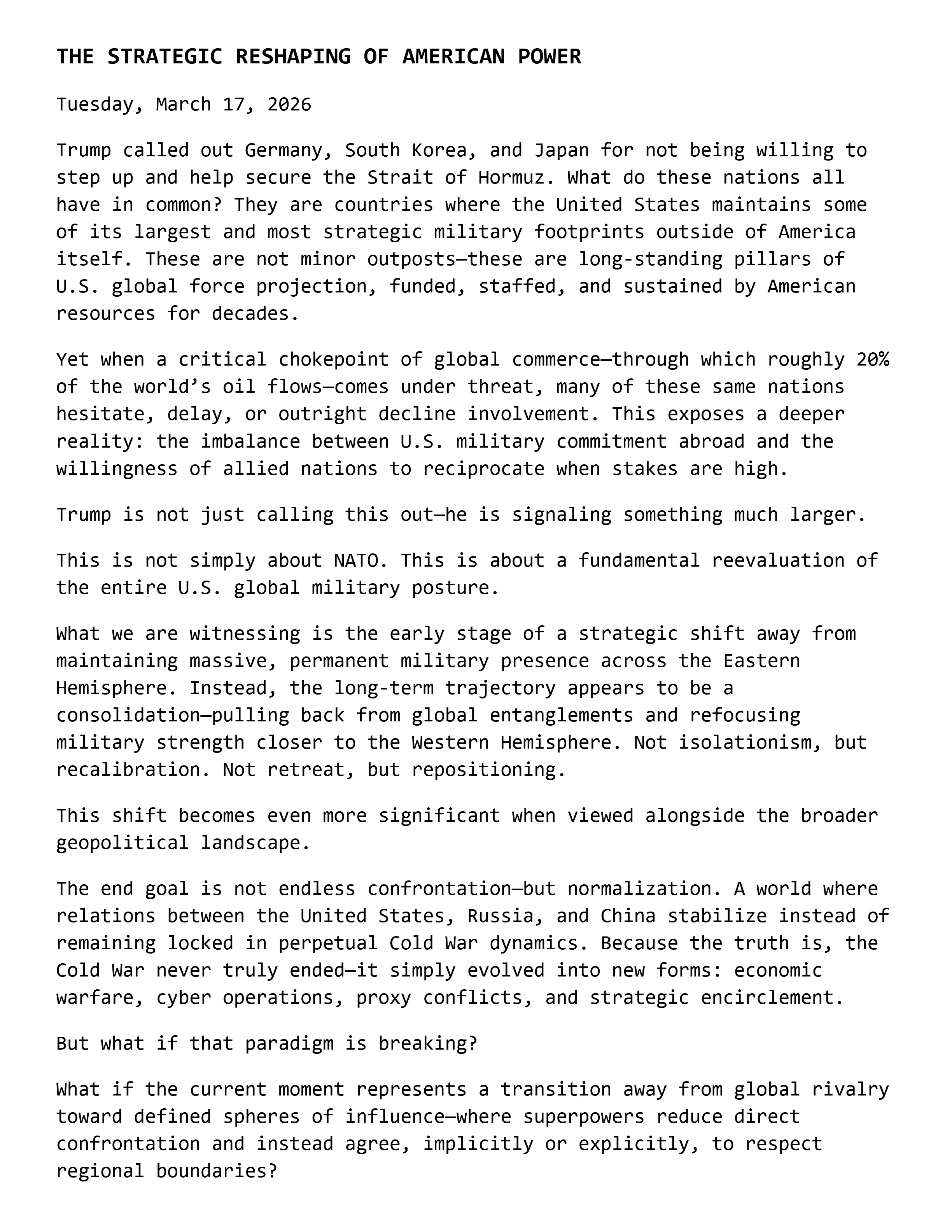 THE STRATEGIC RESHAPING OF AMERICAN POWER