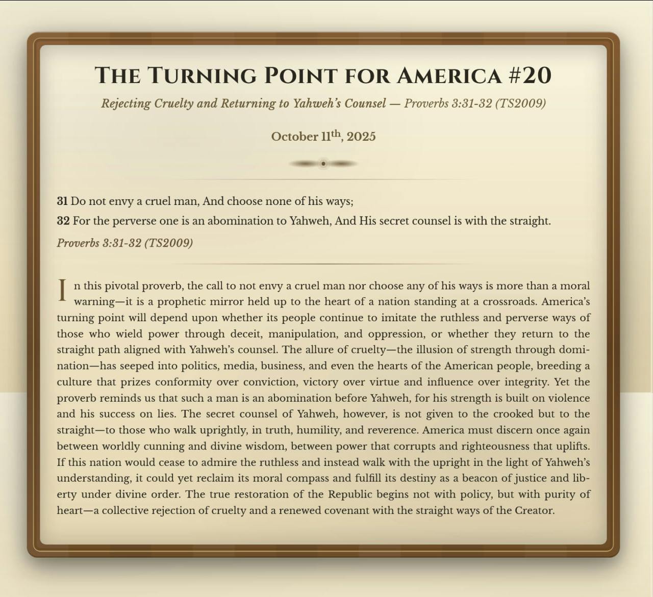 The Turning Point for America #20: Rejecting Cruelty and Returning to Yahweh’s Counsel - Proverbs 3:31-32 TS2009
