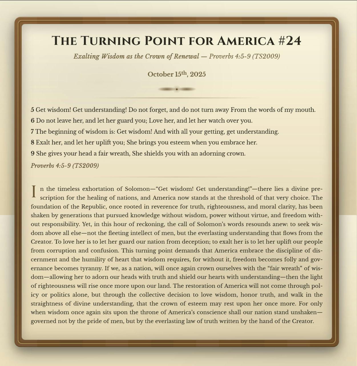 The Turning Point for America #24: Exalting Wisdom as the Crown of Renewal - Proverbs 4:5-9 TS2009