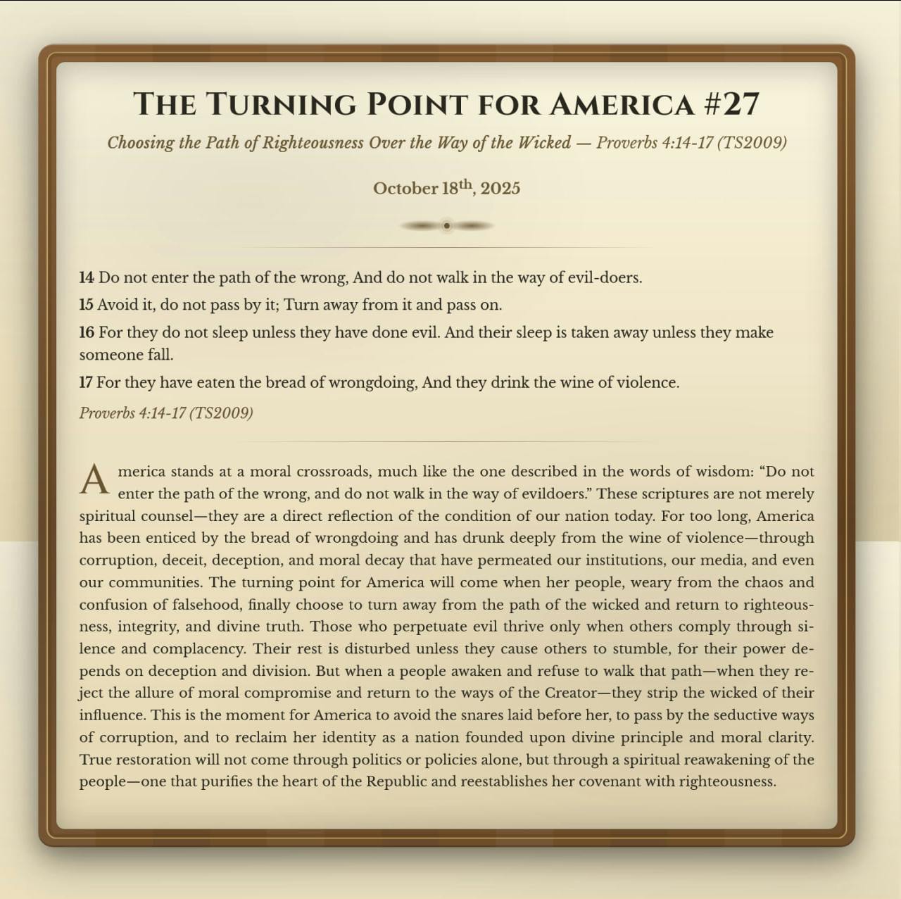 The Turning Point for America #27: Choosing the Path of Righteousness Over the Way of the Wicked - Proverbs 4:14-17 TS2009