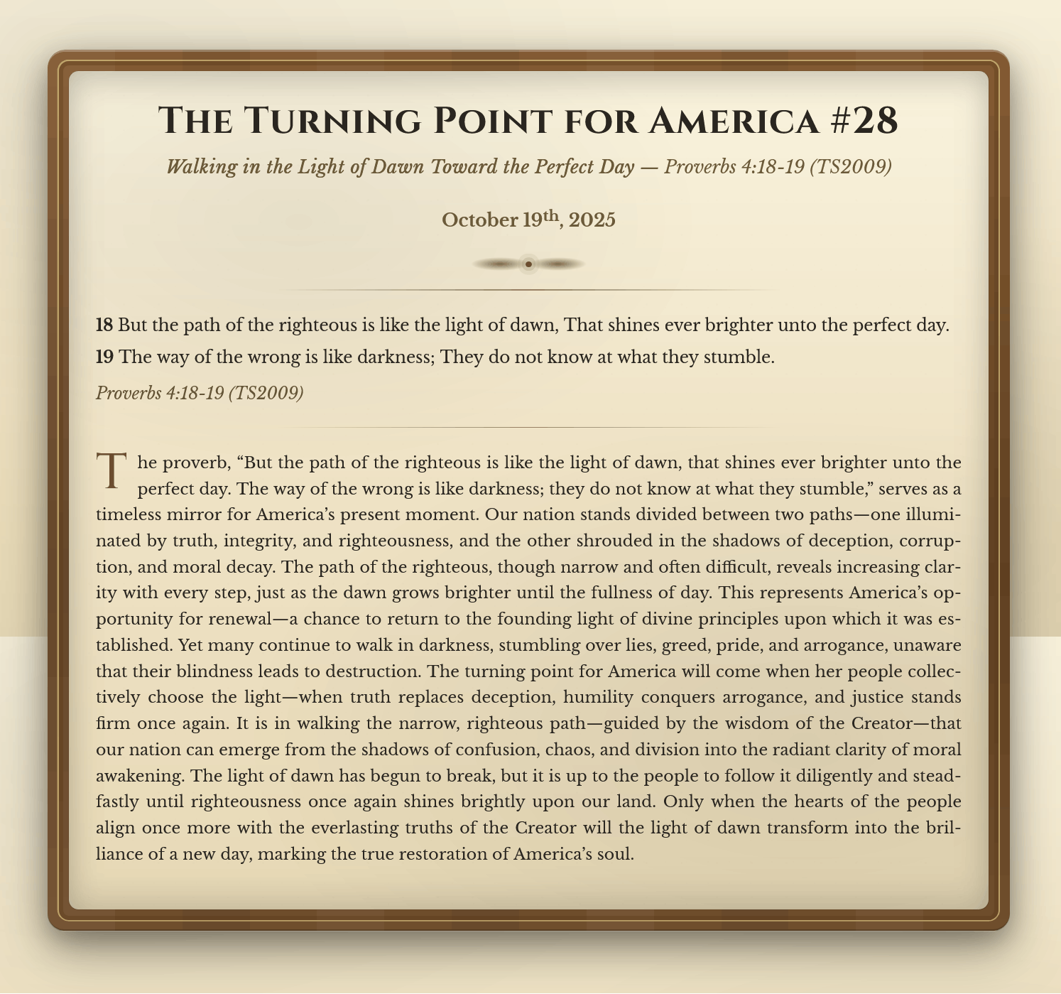 The Turning Point for America #28: Walking in the Light of Dawn Toward the Perfect Day - Proverbs 4:18-19 TS2009
