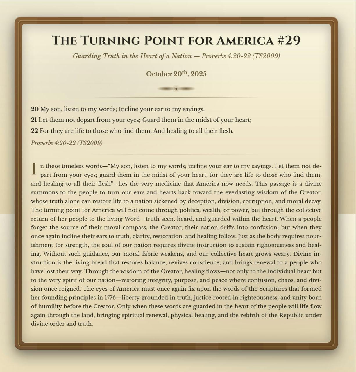 The Turning Point for America #29: Guarding Truth in the Heart of a Nation - Proverbs 4:20-22 TS2009