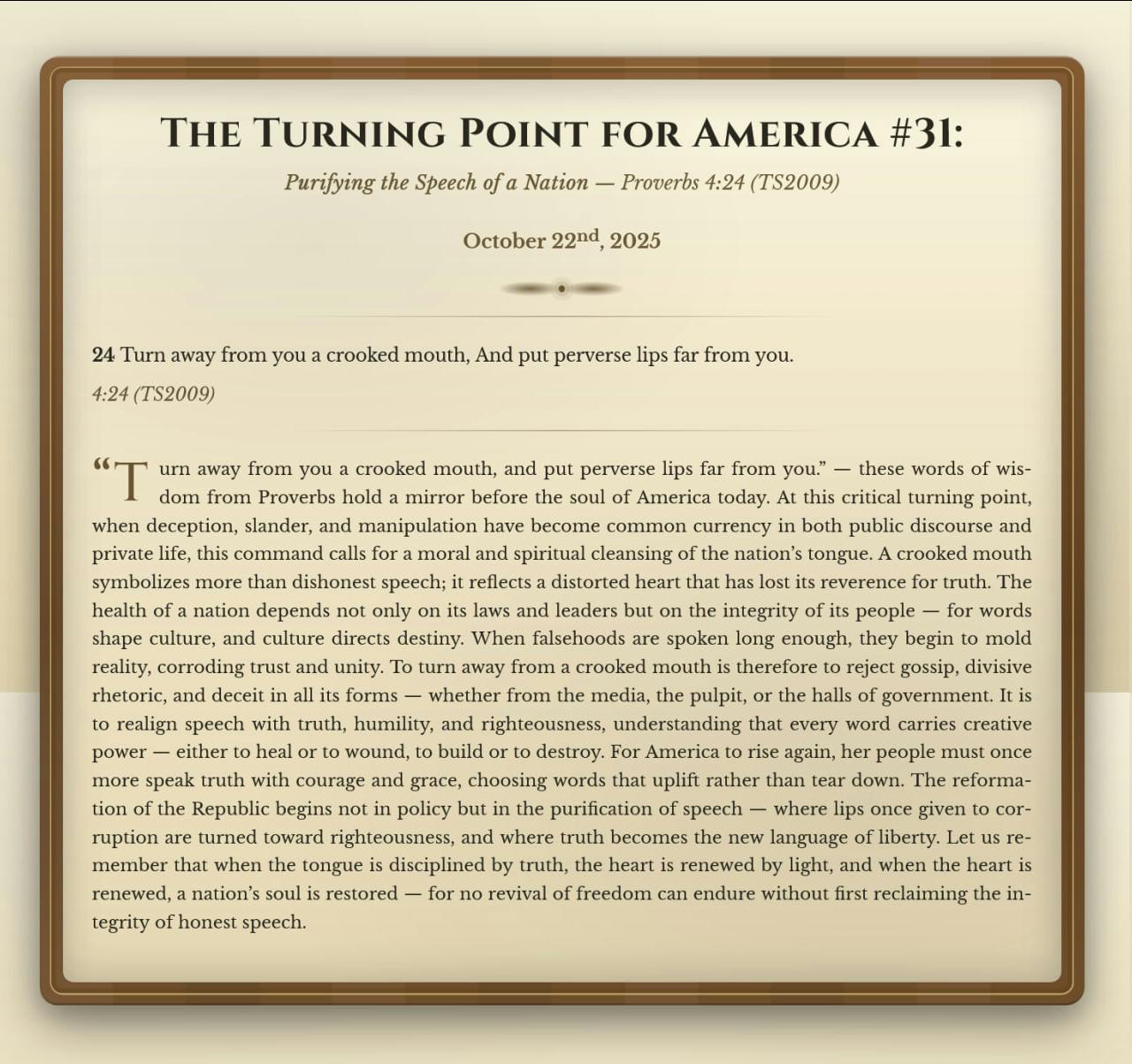 The Turning Point for America #31: Purifying the Speech of a Nation - Proverbs 4:24 TS2009